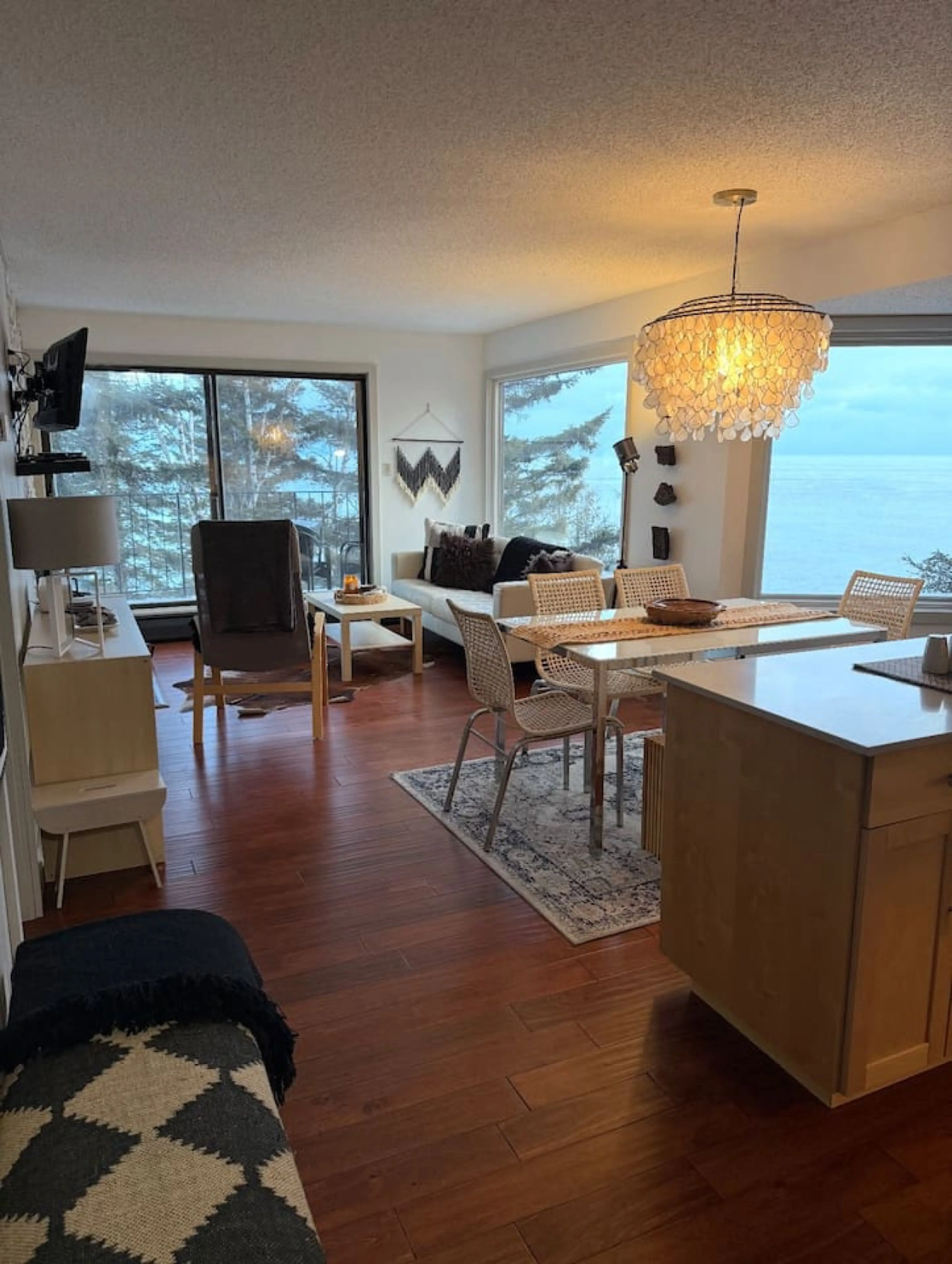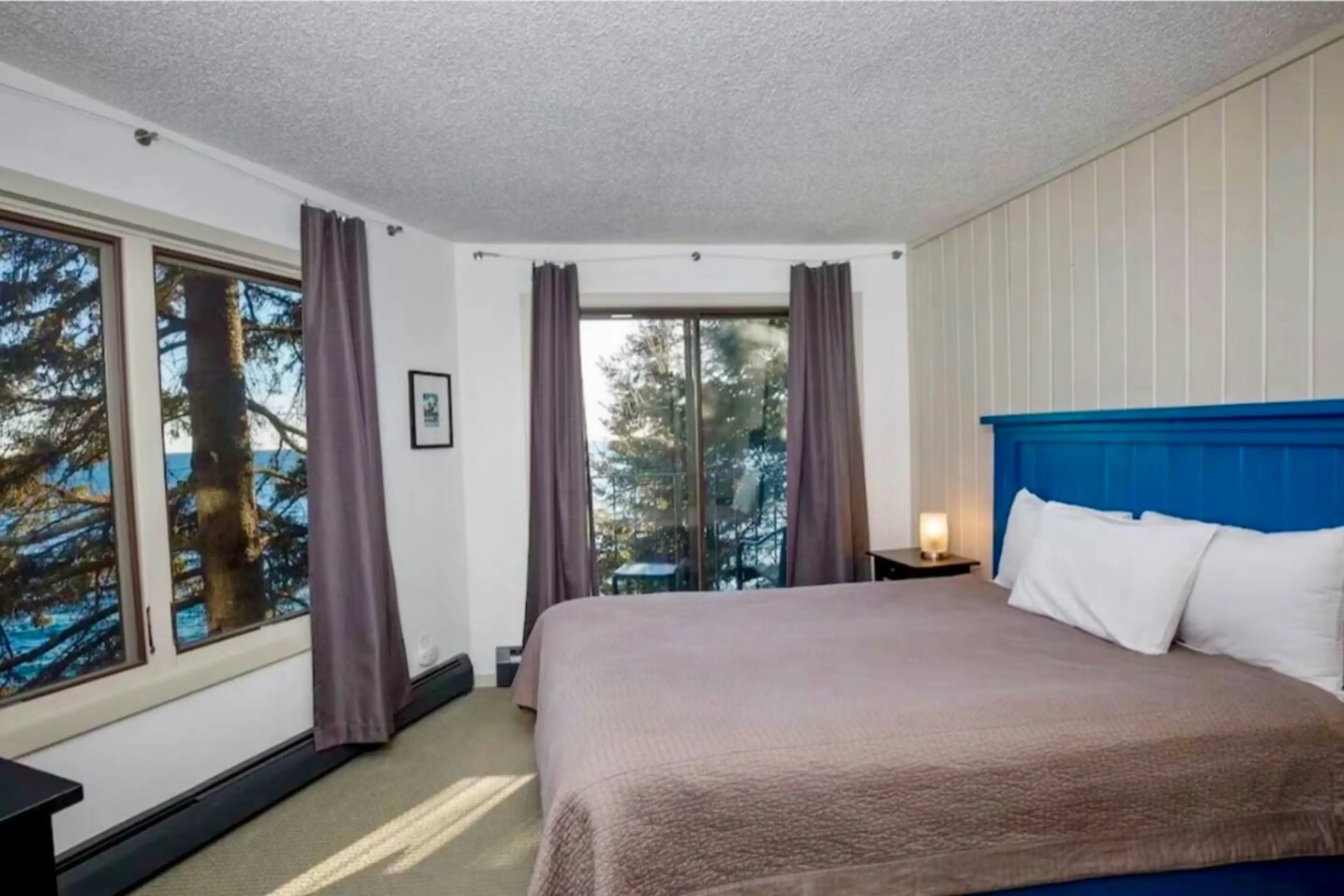 This freshly updated, tastefully decorated 2-bedroom, 2-bath apartment within the Gull Harbor complex offers warm, comfortable living with modern amenities and classic lake-cabin charm. Unwind by the wood-burning fireplace, relax on our private stretch of beach, or warm up in the sauna after a day o...